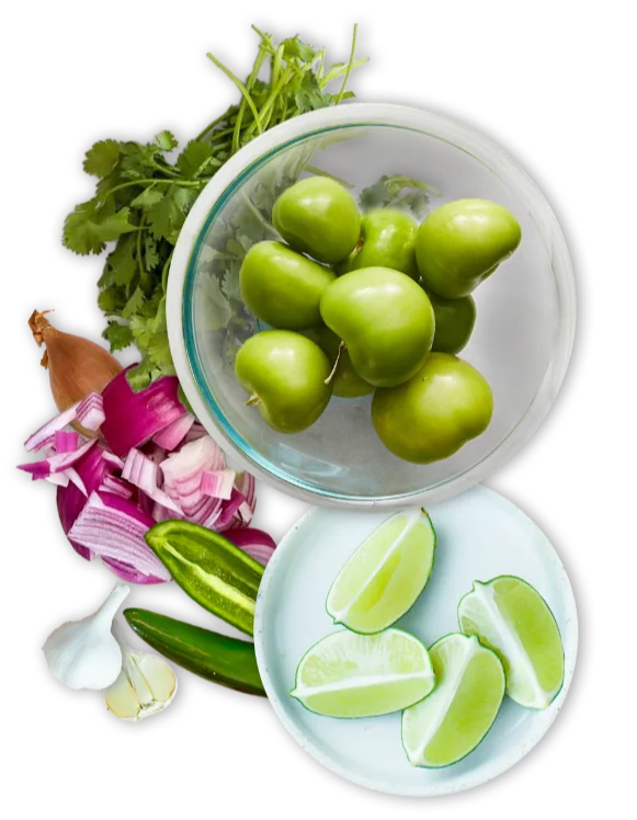 A zesty blend of tomatillos, fresh cilantro, and tangy lime, this bright green sauce has a refreshing kick. Balanced with garlic and jalapeños, it’s perfect for adding a vibrant, citrusy burst of flavor to any dish.